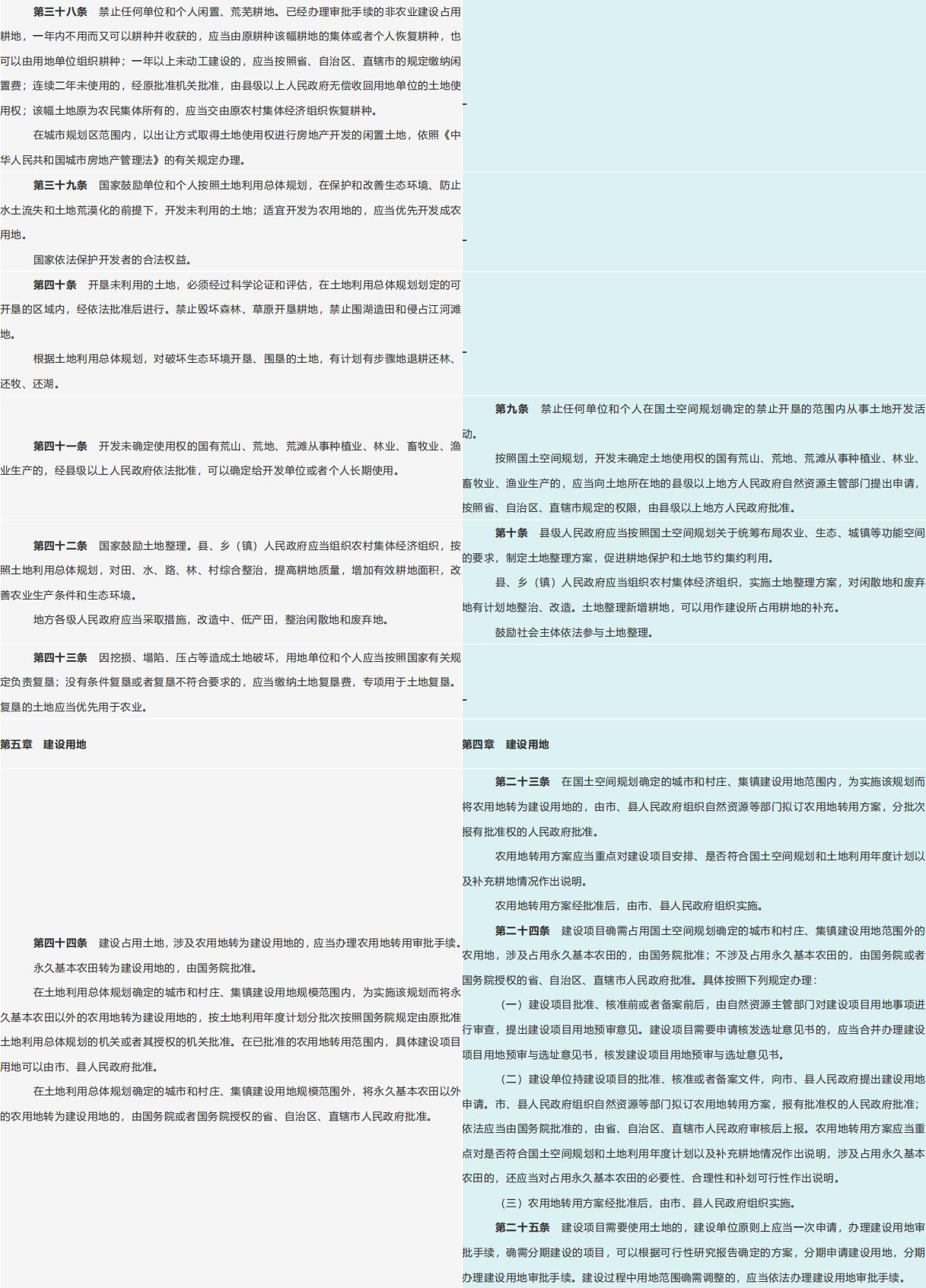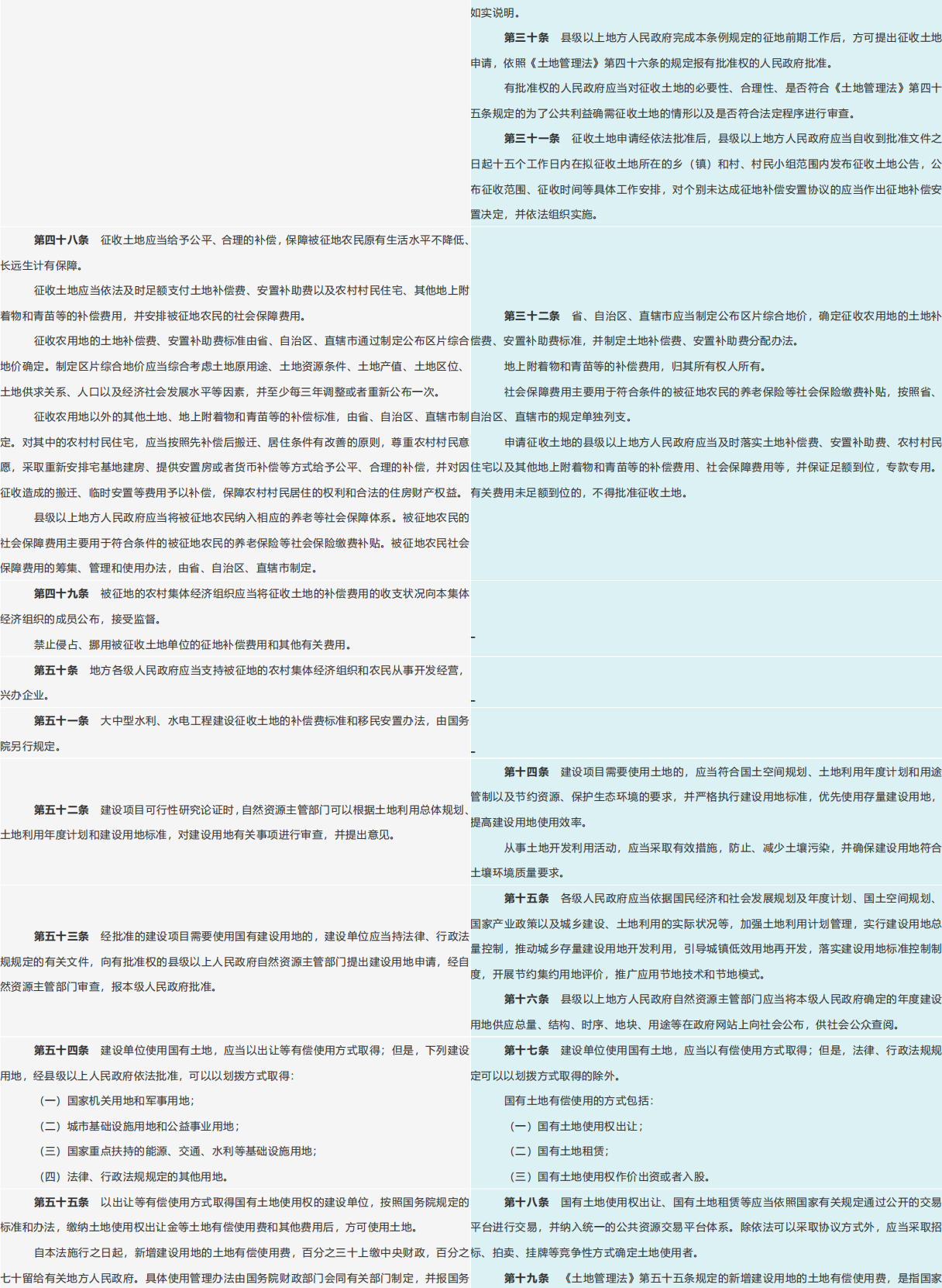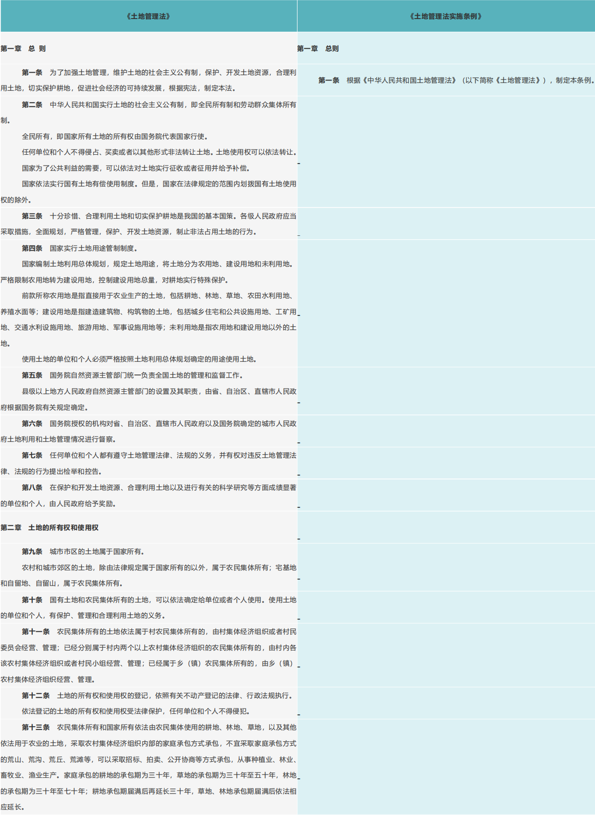 国务院 新《土地管理法》与《土地管理法实施条例》适用对照表